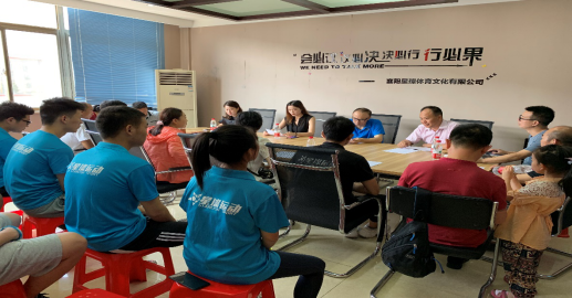 为了深入贯彻习近平总书记教育思想提升教师应用型人才培养和科学研究水平,拓宽校企协同人才培养途径,深化校企合作力度,2019年7月13日,社会体育指导与管理系教师在院长何忠与副院长张华江的带领下,到襄阳星璨体育文化有限公司进行实践基地调研与校企合作研讨,襄阳星璨体运动公园的总经理王银、人事经理李阳以及教练员代表、全体实习生参与了此次调研与校企合作交流与研讨。