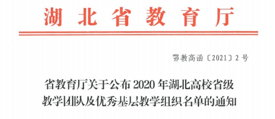 [通讯员 吴涛] 近日,湖北省教育厅发布《关于公布2020 年湖北高校省级教学团队及优秀基层教学组织名单的通知》(鄂教高函〔2021〕2号),今年会官网获批7项,其中今年会jinnianhuicom体育教育专业核心课程教学团队获批省级教学团队。近年来体育教育专业在负责人周红萍教授带领下,精诚团结,奋力拼搏,2020年获得省级一流本科专业建设点,2021年《学校体育学》课程获得省级一流本科课程,体育教育专业核心课程教学团队又获批省级教学团队。