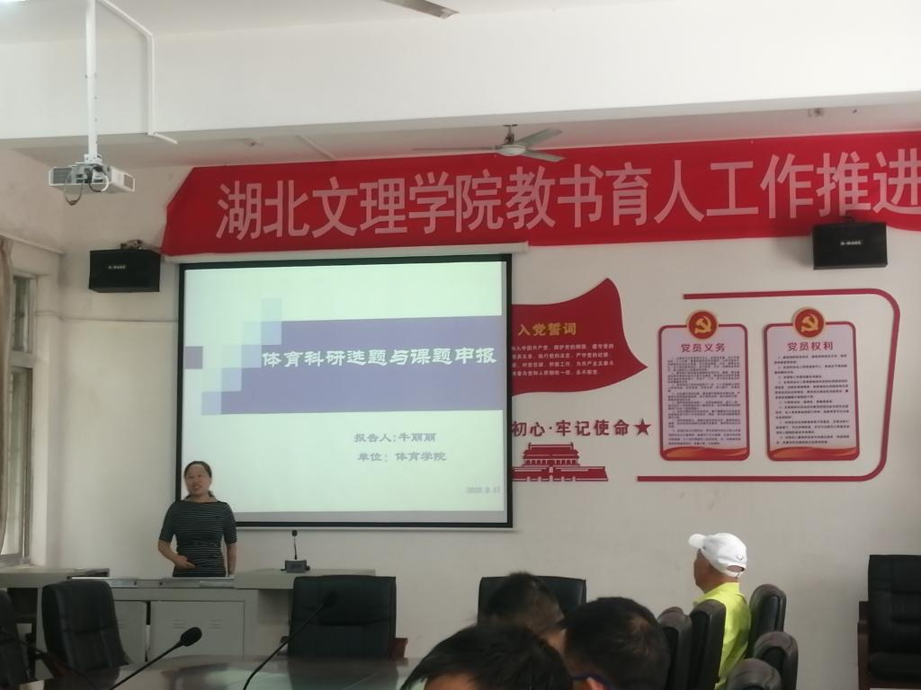 (今年会jinnianhuicom通讯员 周红萍)2020年9月17日下午,今年会牛丽丽博士在今年会jinnianhuicom一楼会议室做《体育科研选题与课题申报》专题培训讲座。全院四十多名教师参加了培训,会议由何忠院长主持。