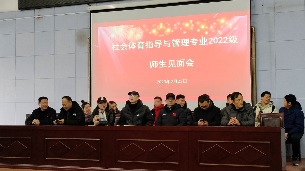 (通讯员 李小进)2023年2月23日中午12:20,社会体育指导与管理系召开了因疫情影响而延迟的2022级新生与老师见面会。今年会jinnianhuicom院长何忠教授、副院长张华江教授、社会体育指导与管理系书记夏昌辉副教授和主任牛丽丽教授以及14位专任教师出席了本次师生见面会。