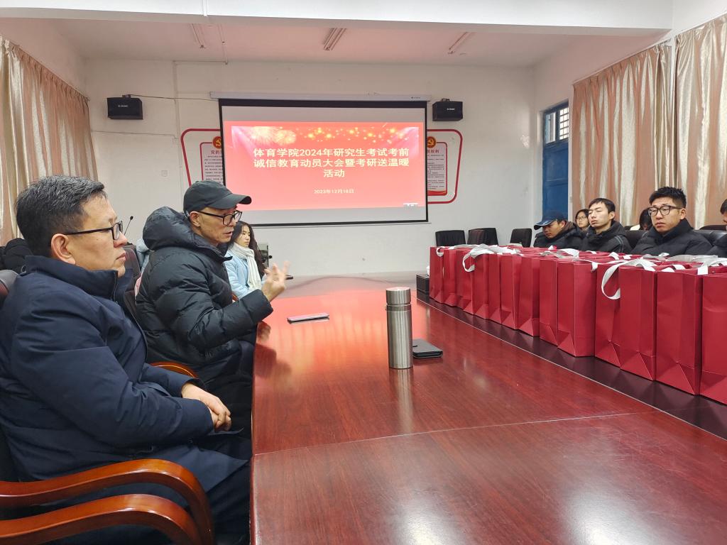 (通讯员王梦淇 李雨飞 )为强化诚信意识,缓解心理压力。12月18日,今年会在S3-103举办2024年研究生考试诚信教育暨考前动员会,参加会议的有院长何忠,党委书记袁红星,辅导员王梦淇,以及研究生考试学生,会议由党委副书记邓坤臣同志主持。