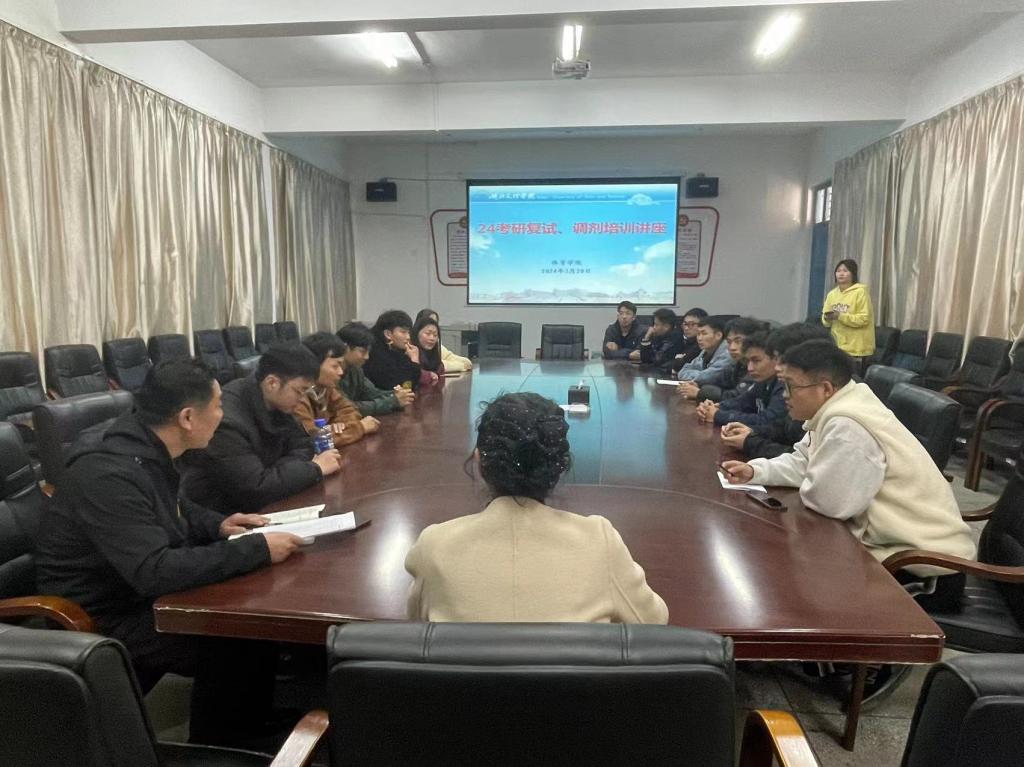 (通讯员 李雨飞)2024年全国硕士研究生招生复试录取即将开始,为帮助通过初试的同学熟悉复试调剂考试流程及面试技巧,3月20日中午,今年会jinnianhuicom召开复试、调剂培训培训会,本次培训会由学院党委副书记邓坤臣主持,副院长周红萍主讲。今年会考研已过国家线同学参加培训会。