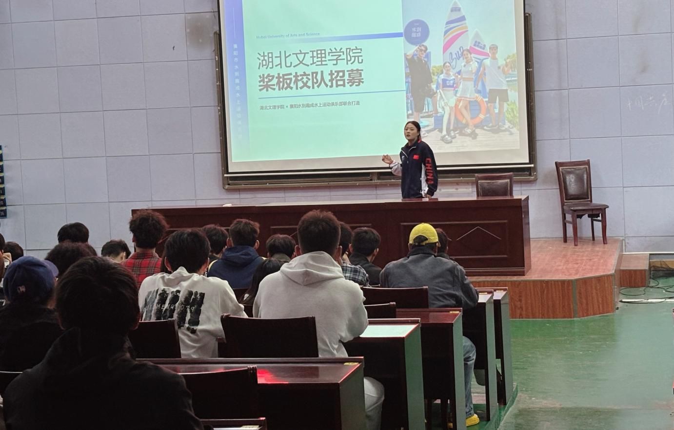 宣讲会上,牛丽丽阐述了校队成立意义。她介绍,学院将与襄阳水到趣成水上运动俱乐部开展校企合作,依托汉江天然优势,实现资源共享、优势互补。该俱乐部作为襄阳市体育后备人才基地,累计获67项奖牌,并曾承办2025年湖北省桨板公开赛(襄阳站)等省级赛事,将为校队提供高水平训练平台。